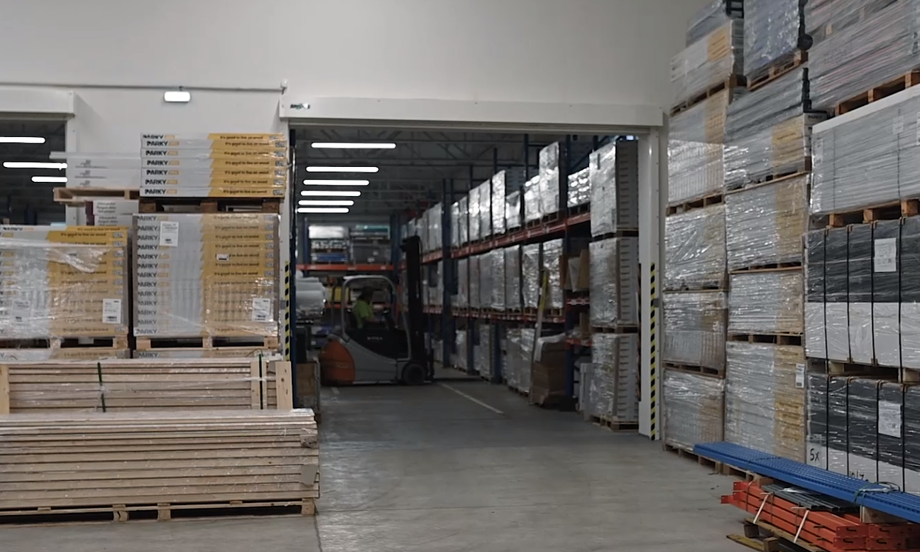1000 m2 velký vytápěný sklad umožnuje okamžitou dodávku našich podlah.
